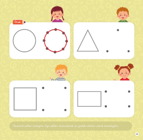 Örnek Geometrik şekilleri inceleyelim. Aynı şekilleri oluşturabilmek için yandaki noktaları çizerek tamamlayalım. 45