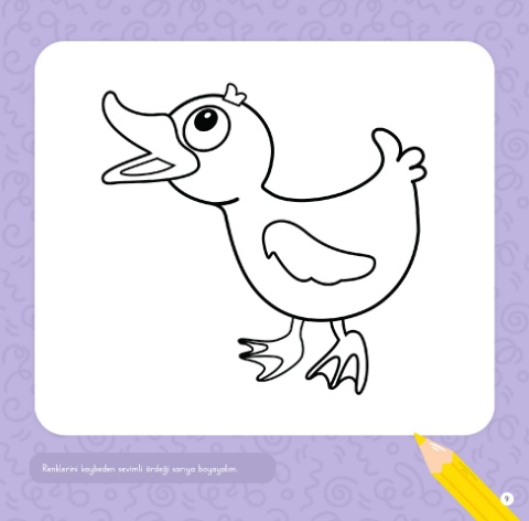 Renklerini kaybeden sevimli ördeği sarıya boyayalım. 9