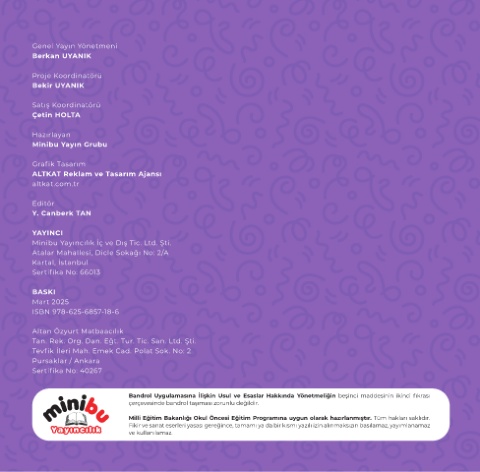 M ll Eğ t m Bakanlığı Okul Önces Eğ t m Programına uygun olarak hazırlanmıştır. Tüm hakları saklıdır.