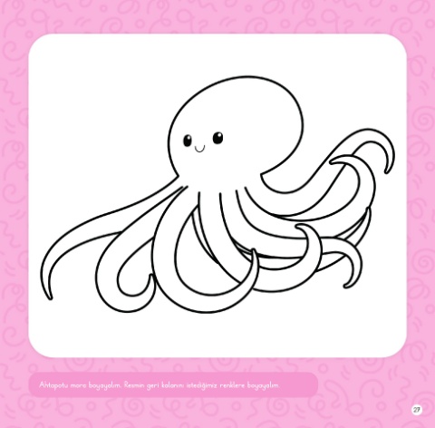 Ahtapotu mora boyayalım. Resmin geri kalanını istediğimiz renklere boyayalım. 27