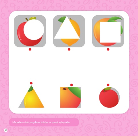 Meyvelerin eksik parçalarını bulalım ve çizerek eşleştirelim. 32
