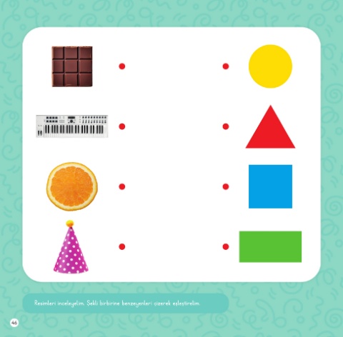 Resimleri inceleyelim. Şekli birbirine benzeyenleri çizerek eşleştirelim. 46