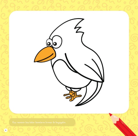 Kuş resminin boş kalan kısımlarını kırmızı ile boyayalım. 4