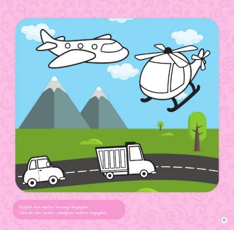 Aşağıda olan taşıtları kırmızıya boyayalım. Yukarıda olan taşıtları istediğimiz renklere boyayalım. 19