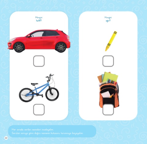 Hangisi Hangisi hafif? ağır? Her sırada verilen nesneleri inceleyelim. Sorulan soruya göre doğru nesnenin kutusunu turuncuya boyayalım. 22