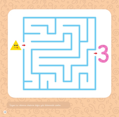 Üçgeni üç rakamına ulaştıran doğru yolu kalemimizle çizelim. 48