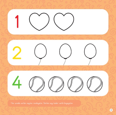 1 2 4 Her sırada verilen sayıları inceleyelim. Verilen sayı kadar varlık boyayalım. 31