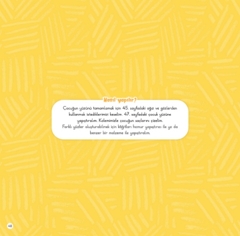 Çocuğun yüzünü tamamlamak için 45. sayfadaki ağız ve gözlerden