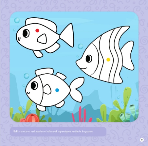Balık resimlerini renk ipuçlarını kullanarak öğrendiğimiz renklerle boyayalım. 19