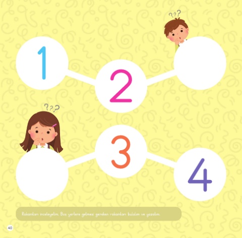 1 2 3 4 Rakamları inceleyelim. Boş yerlere gelmesi gereken rakamları bulalım ve yazalım. 40